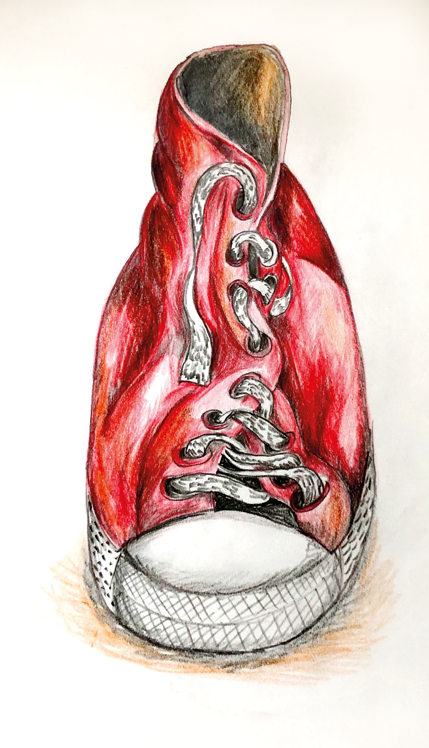 Turnschuh farbig, Studie | Buntstift auf Papier, DIN A4